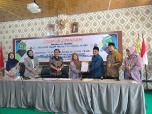 Jambi, 22 Juni 2025 – Institut Islam Mamba’ul Ulum Jambi (INISMU) resmi menjalani asesmen lapangan dalam rangka perubahan bentuk menjadi Universitas Islam Mamba’ul Ulum Jambi. Kegiatan ini merupakan salah satu tahapan penting dalam proses transformasi kelembagaan yang bertujuan untuk meningkatkan kapasitas institusi dan memperluas jangkauan layanan pendidikan tinggi Islam di Provinsi Jambi.