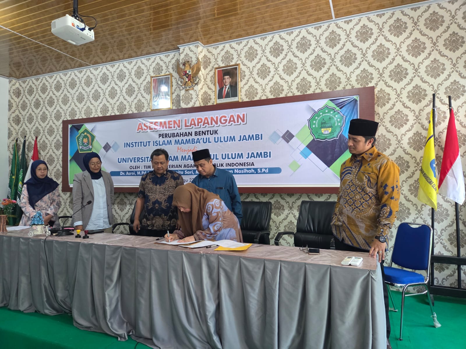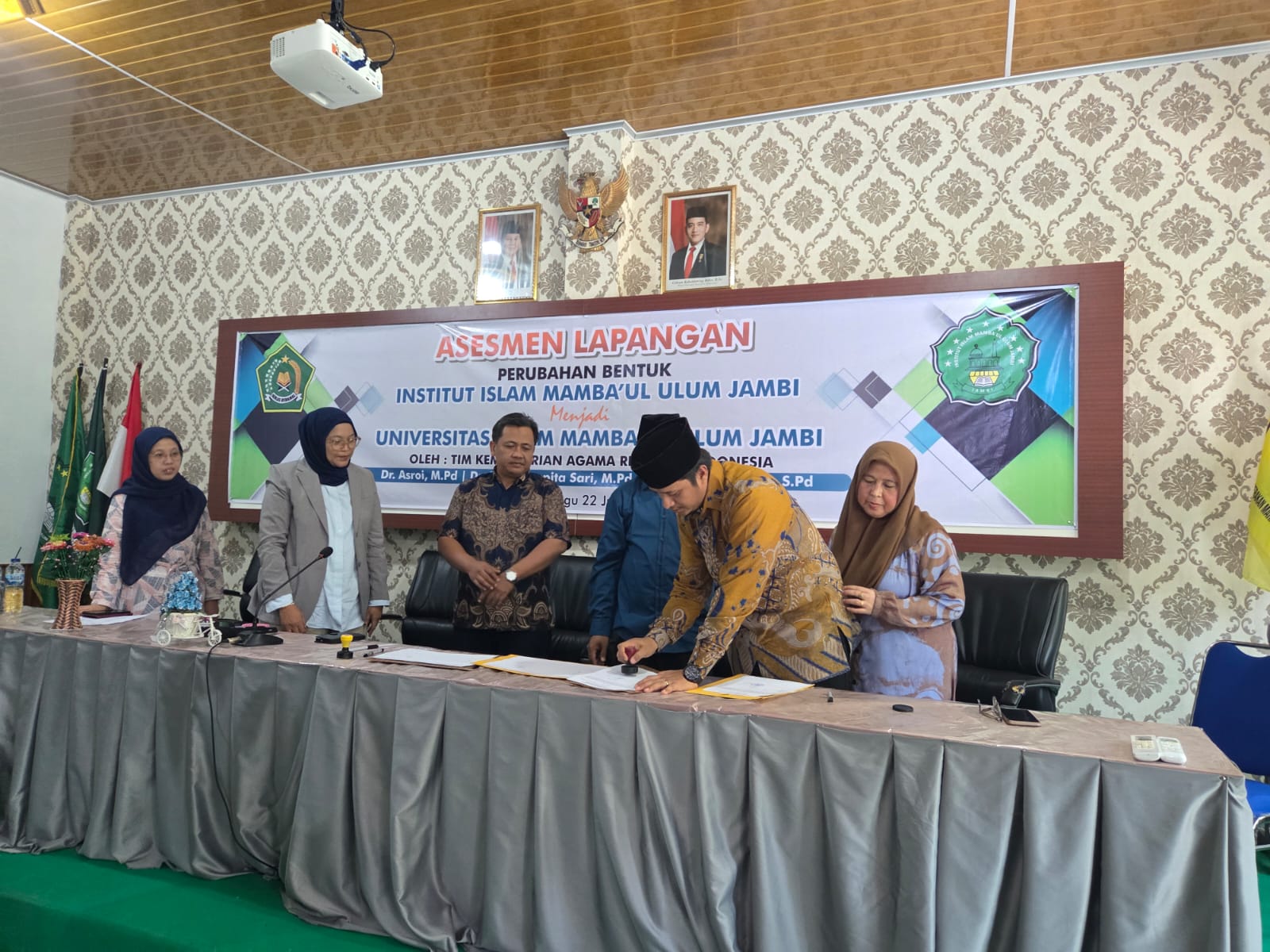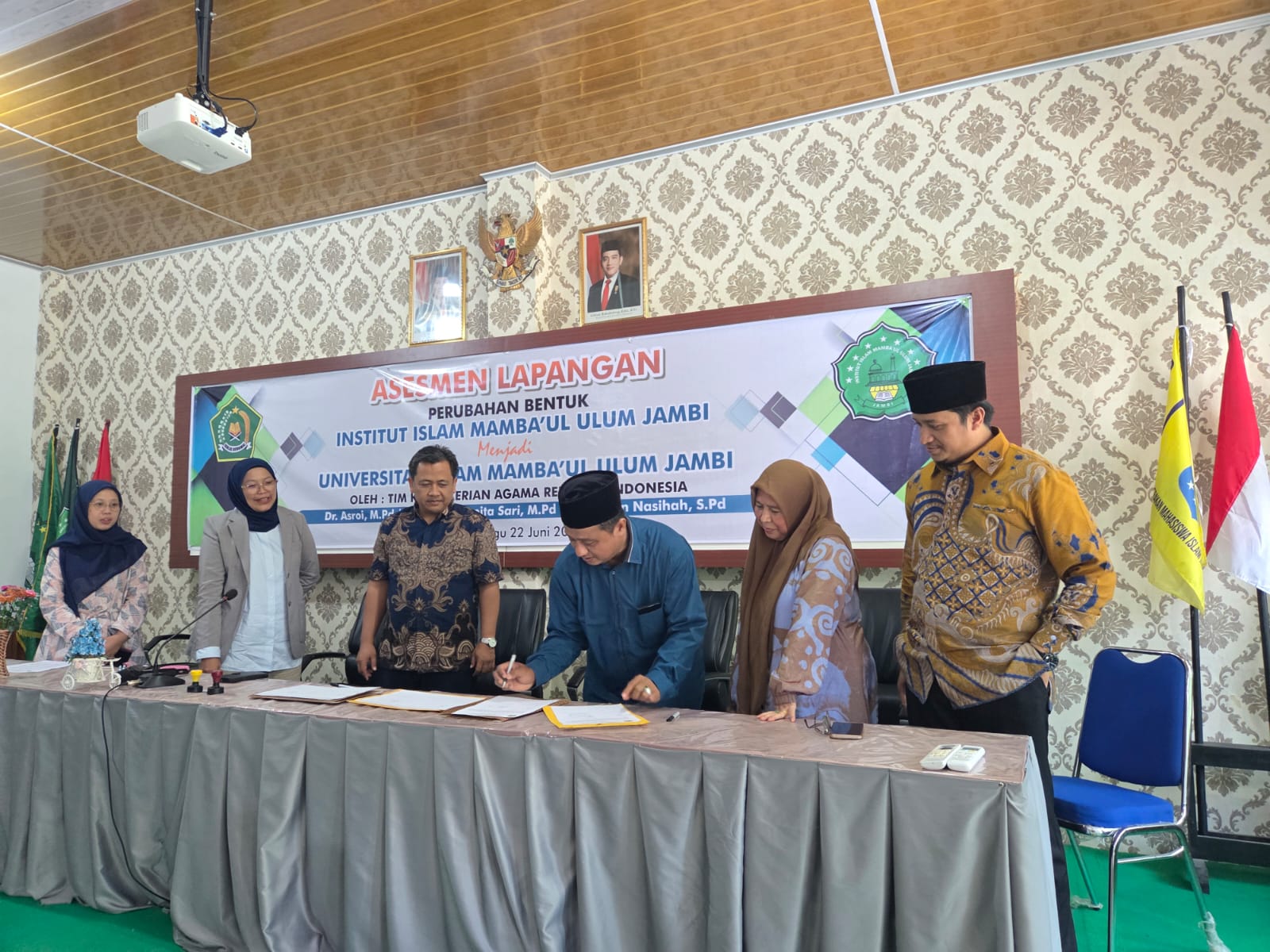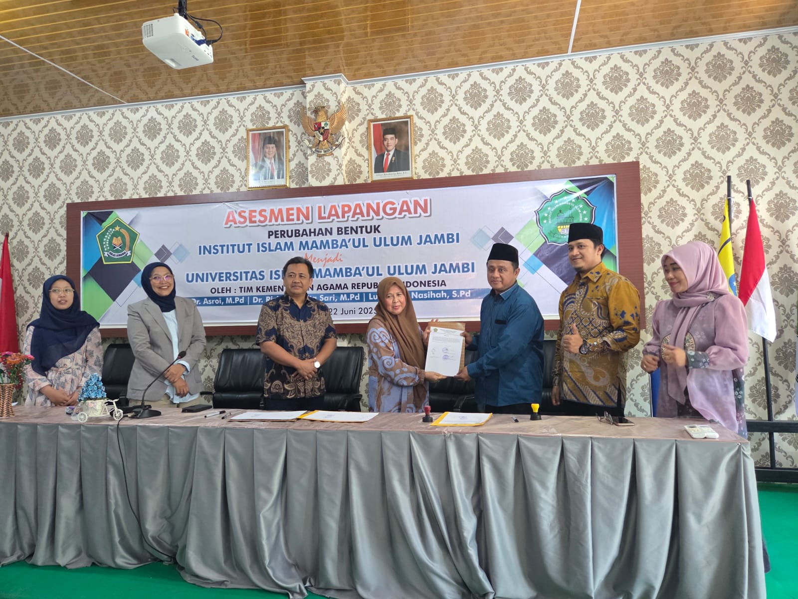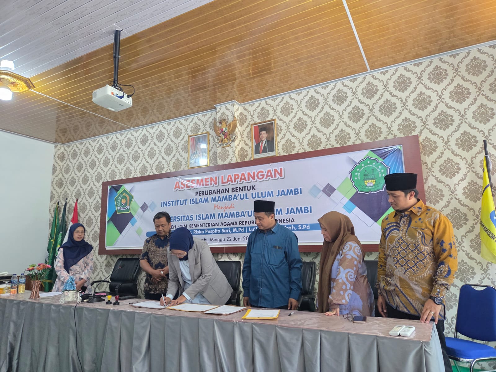 Dengan dilaksanakannya asesmen lapangan ini, diharapkan perubahan bentuk INISMU Jambi menjadi Universitas Islam Mamba’ul Ulum Jambi dapat segera terwujud, dan ke depan mampu memberikan kontribusi lebih besar dalam mencetak generasi intelektual muslim yang unggul, moderat, dan berdaya saing global.