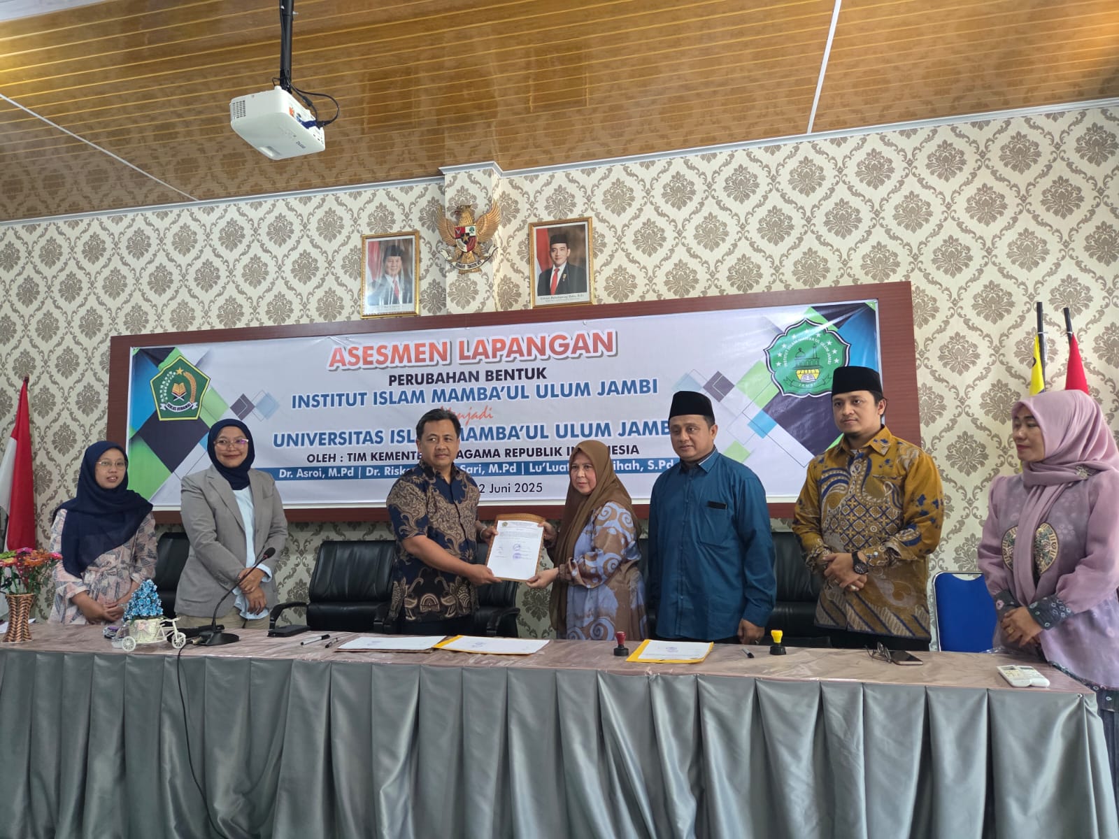Jambi, 22 Juni 2025 – Institut Islam Mamba’ul Ulum Jambi (INISMU) resmi menjalani asesmen lapangan dalam rangka perubahan bentuk menjadi Universitas Islam Mamba’ul Ulum Jambi. Kegiatan ini merupakan salah satu tahapan penting dalam proses transformasi kelembagaan yang bertujuan untuk meningkatkan kapasitas institusi dan memperluas jangkauan layanan pendidikan tinggi Islam di Provinsi Jambi.